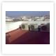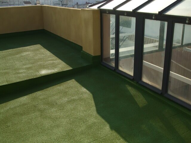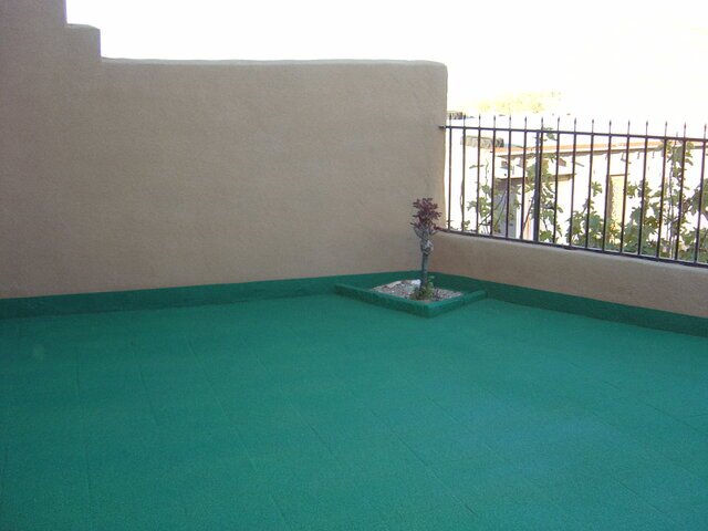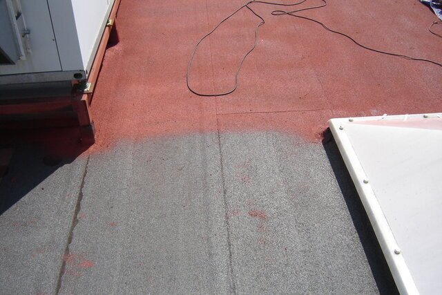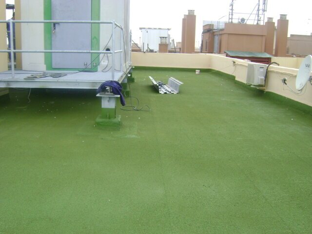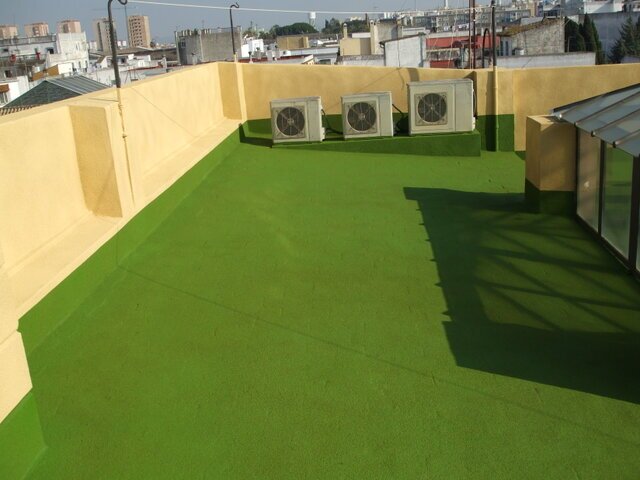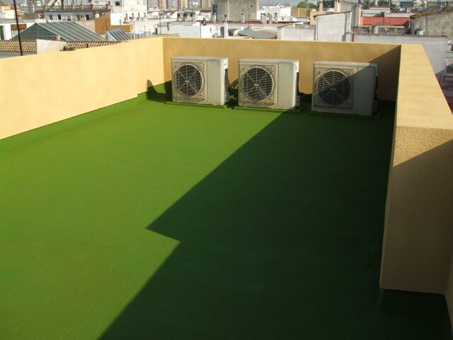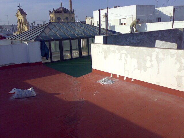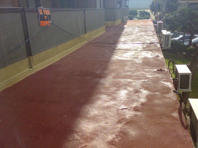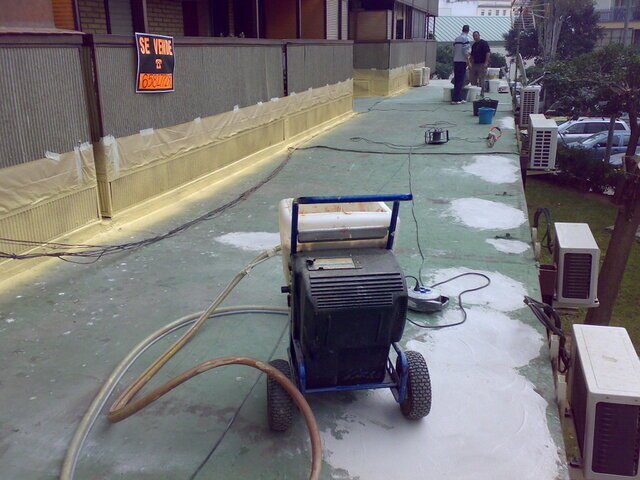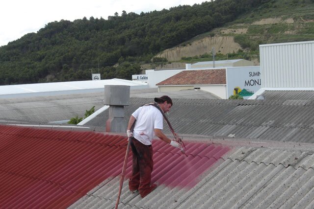 Proyectado en cubiertas y fachadas, supone un descenso de unos 25/30º en la temperatura ambiente, siendo impermeable a las inclemencias del tiempo a la vez que permite transpirar las paredes un 75/80 %.